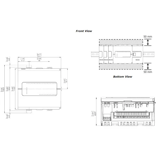 Sterownik PLC Unitronics standard USC-B5-R38 wyposażony 24 wejścia binarne w tym 4 szybkie, 2 wejścia analogowe prądowo-napięciowe o rozdzielczości 12 bit oraz 12 wyjść przekaźnikowych. Jednostkę można rozbudować do 2048 punktów wejść-wyjść. Wielofunkcyjny sterownik PLC z aplikacją wirtualnego HMI, która umożliwia zdalny dostęp do sterownika, za pomocą tabletów, komputerów, czy też smartfonów poprzez VNC. Urządzenie Unistream B5 jest w stanie pracować w zakresie temperatur -20...55°C. PLC USC-B5-R38 został wyposażony w 2 pory Ethernet, 2 porty USB oraz slot kart SD. Dodatkowo jednostkę można rozbudować o porty szeregowe RS232, RS485 oraz CAN. Wymiary USC-B5-R38 wynoszą 121,1x123,2x63,9mm., waga wynosi 390 gram.