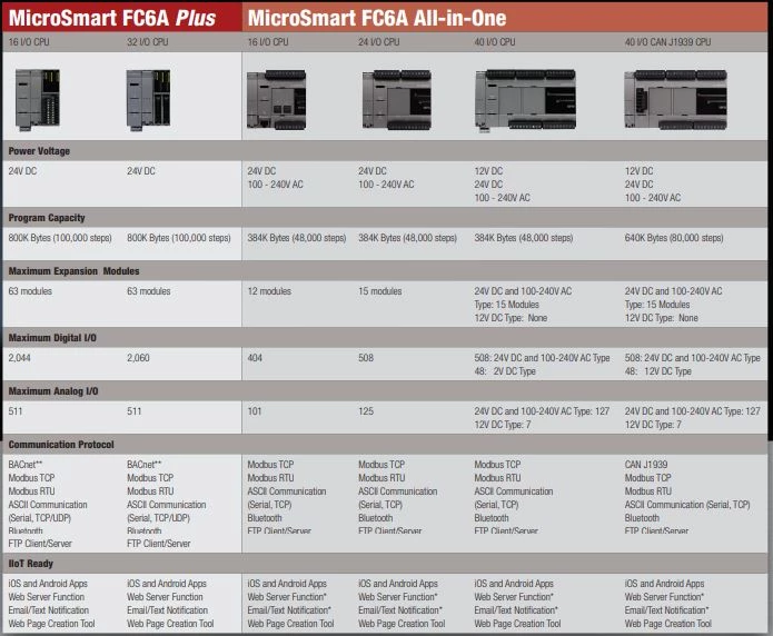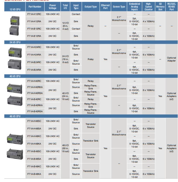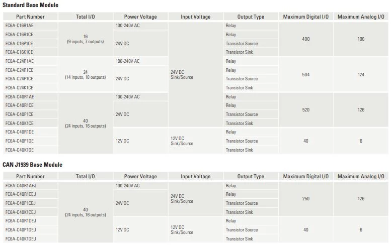 Jednostki główne IDEC sprawdzają się w wielu aplikacjach przemysłowych. W ofercie dostępne są jednostki główne z możliwością rozbudowy do 520 punktów wejść/wyjść cyfrowych oraz 126 punktów analogowych. Biorąc pod uwagę rodzaj zasilania jednostki CPU IDEC można podzielić na trzy grupy, o zasilaniu 230 V AC, 24 V DC oraz 12 V DC. Ponadto poszczególne jednostki różnią się liczba wbudowanych wejść oraz wyjść.