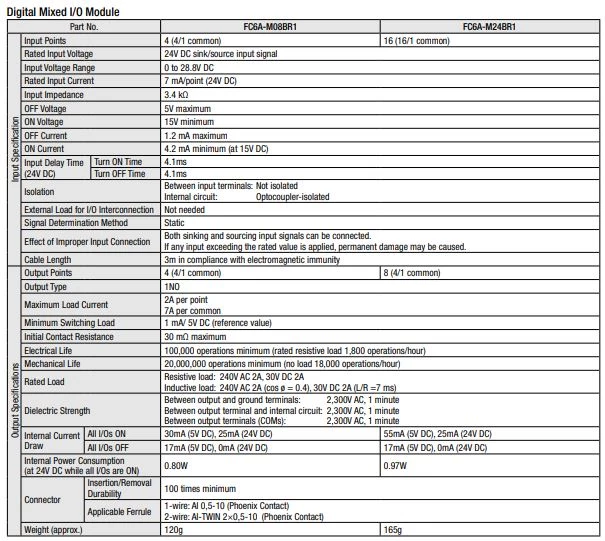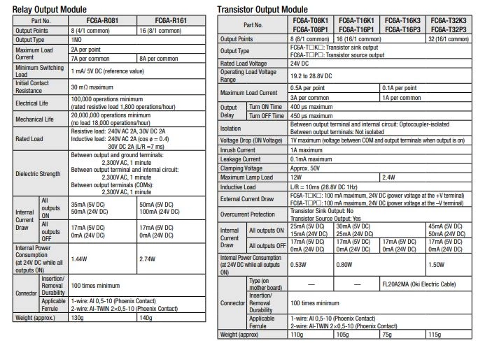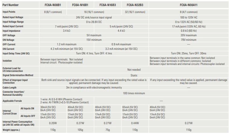 Moduły binarne IDEC instalowane z prawej strony jednostki głównej. W ofercie znajdują się moduły wejść cyfrowych, moduły wyjść cyfrowych oraz moduły mieszane. Dla sterowników PLC FC6A Idec oferuje moduły wejść cyfrowych 8,16 oraz 32-punktowe. Moduł 8 wejść cyfrowych dostępny jest w wersji na 230VAC. Moduły wyjść binarnych Idec dostępne są w konfiguracji 8 lub 16 wyjść przekaźnikowych, 8,16 lub 32 wyjść tranzystorowe. dodatkowo IDEC oferuje moduły mieszane 8 oraz 24 punktowe. Moduły 8-punktowe dysponują 4 wejściami cyfrowymi i 4 wyjściami, natomiast moduł mieszany 24-punktowy posiada 14 wejść i 10 wyjść binarnych.