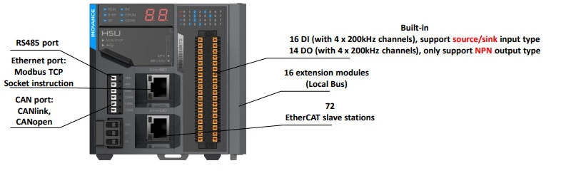 Jednostki główne H5U Inovance z komunikacją EtherCat. PLC H5U mają możliwość sterowania 36 osiami napędowymi, w tym 32 po komunikacji EtherCat. Konfiguracja jednostek centralnychPLC H5U Inovance odbywa się darmowych oprogramowaniem AutoShop w języku LD lub SFC.
