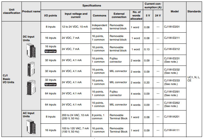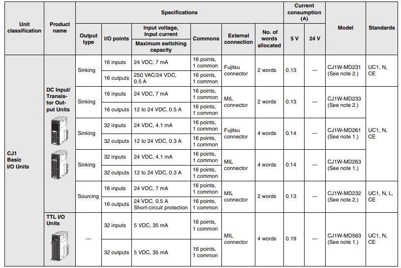Moduły binarne CJ2 Omron przystosowane są do montażu z prawej strony jednostki głównej. W ofercie znajdują się moduły wejść cyfrowych CJ2 , moduły wyjść przekaźnikowych, moduły wyjść tranzystorowych oraz moduły mieszane. Omron oferuje rozszerzenia binarne 8, 16, 32 oraz 64-punktowe. Dostępne są wejścia cyfrowe następujących typów: AC voltage, Interrupt, none, PNP/NPN, TTL oraz voltage pulse. Natomiast typy dostępnych wyjść cyfrowych to: NPN, PNP, przekaźnik, none, TTL oraz triac. Poszczególne moduły oprócz różnej liczby punktów wejść/wyjść różnią się także formą przyłącza. 32-puktowe oraz 64-punktowe moduły binarne zostały wyposażone w 40-stykowe złącze. Ponadto Omron oferuje szereg dedykowanych kabli oraz styków pozwalające na łatwe połączenie z modułami o dużej liczbie I/O