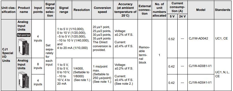 Omron oferuje do sterowników PLC CJ2 moduły wejść/wyjść analogowych oraz moduły sterowania temperaturą. Moduły analogowe CJ2 sprawdzają się zarówno przy wielokanałowych pomiarach temperatury, jak i przy szybkim, precyzyjnym zbieraniu danych. Producent zadbał o wyposażenie rozszerzeń analogowych w zabudowane funkcje skalowania, filtrowania czy tez alarmowania. W zależności od wybranego modelu, rozszerzenie dysponuje 2, 4 lub 8 wejściami/wyjściami analogowymi. Ponadto moduły temperaturowe dostępne są z zabudowanymi wyjściami cyfrowymi. Moduły wejść analogowych CJ2 dostępne są o rozdzielczości 13, 14, 15 lub 16 bit, natomiast moduły wyjść analogowych występują z rozdzielczością 12 lub 13 bitów.