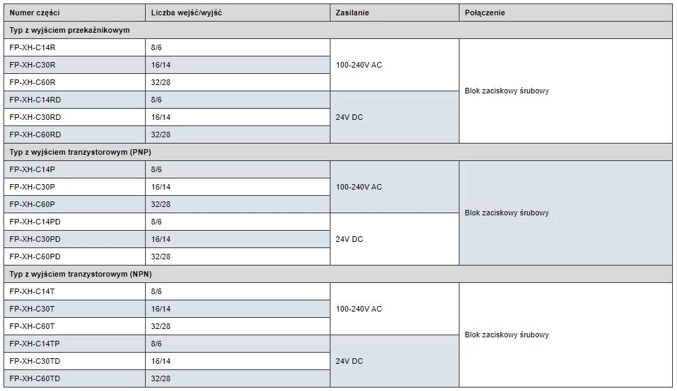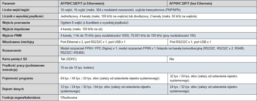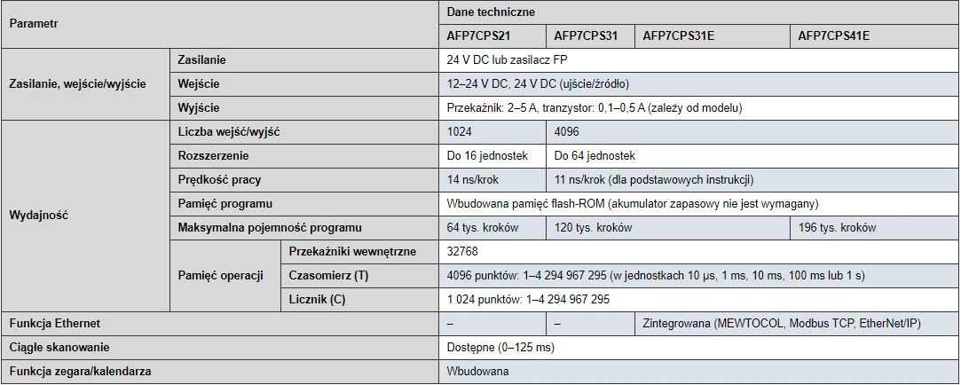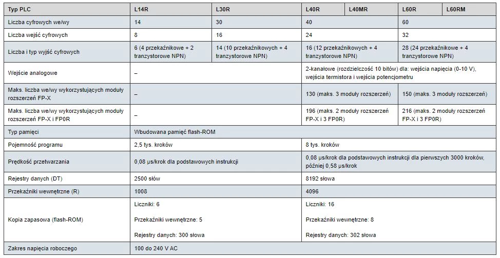 Jednostki główne FP Panasonic - modułowe sterowniki o dużych możliwościach rozbudowy. Wszystkie jednostki główne FP marki Panasonic zostały wyposażone w wydajne procesory oraz duże zasoby pamięci programu. W zależności od rodziny dostępne są PLC z funkcją kopii zapasowej, tryb impulsowy czy niezależną pamięć komentarzy. Kolejnym atutem sterowników PLC Panasonic jest szybkość przetwarzania komentarzy.