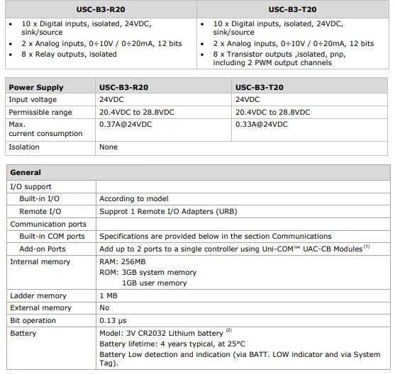 Sterowniki PLC UniStream B3 marki Unitronics z wirtualnym HMI. Urządzenia zostały wyposażone w zabudowane trendy oraz mierniki. dodatkowo operator ma do dyspozycje funkcję auto-tune PID, tabele danych oraz receptury i próbkowanie danych. Atutem PLC Unitream B3 jest możliwość ustawienia kilku poziomów dostępu zabezpieczonych hasłem. W standardzie sterowniki Unistream basic zostały wyposażone w wejścia analogowe, 2 porty ethernet oraz port USB host. Ponadto producent daje możliwość rozbudowy o porty szeregowe RS232, RS485 lu b CAN. Unistream B3 classic obsługuję takie protokołu komunikacyjne jak: CANopen, CAN Layer2, MODBUS, EtherNetIP, RS232/485, TCP/IP lub CANbus własna ramka, SNMP Agent/Trap, modems, GPRS/GSM oraz MQTT. Dodatkowo urządzenia te obsługują wiadomości SMS oraz e-mail. Kolejnym atutem jest opcja zdalnego dostępu za pomocą VNC.