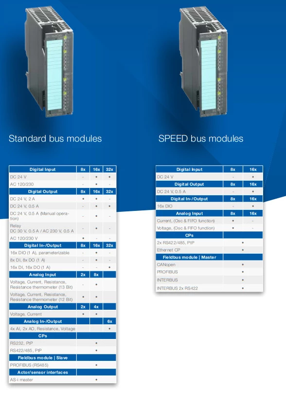 Moduły rozszerzeń z serii 300S+ kompatybilne są z systemem sterowników Siemens Simatic S7-300.