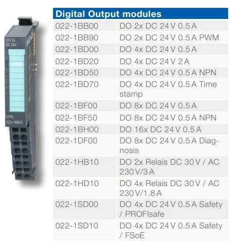 Moduły rozszerzeń VIPA dedykowane do sterowników PLC serii SLIO. Producent oferuje do tej serii sterowników moduły binarne, moduły analogowe, moduły funkcyjne, rozszerzenia komunikacyjne oraz moduły interfejsu. W zależności od wybranego moduły cyfrowego dostępne są moduły o różnej ilości wejść czy wyjść, oraz moduły mieszane. Rozszerzenia analogowe dostępne są z wejściami analogowymi lub wyjściami analogowymi. Moduły wejść analogowych SLIO VIPA dostępne są w wersji z wejściami napięciowymi lub prądowymi. Rozszerzenia wyjść analogowych analogicznie jak moduły wejść analogowych dostępne są w wyjściami prądowymi lub napięciowymi.