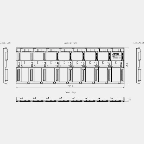 Szyna BACKPLANE 6ES7590-0BH00-0AA0 Siemens na 8 modułów. Szyna magistrali 6ES75900BH000AA0 dedykowana do serii sterowników PLC Siemens S7-1500 oraz ET 200MP.